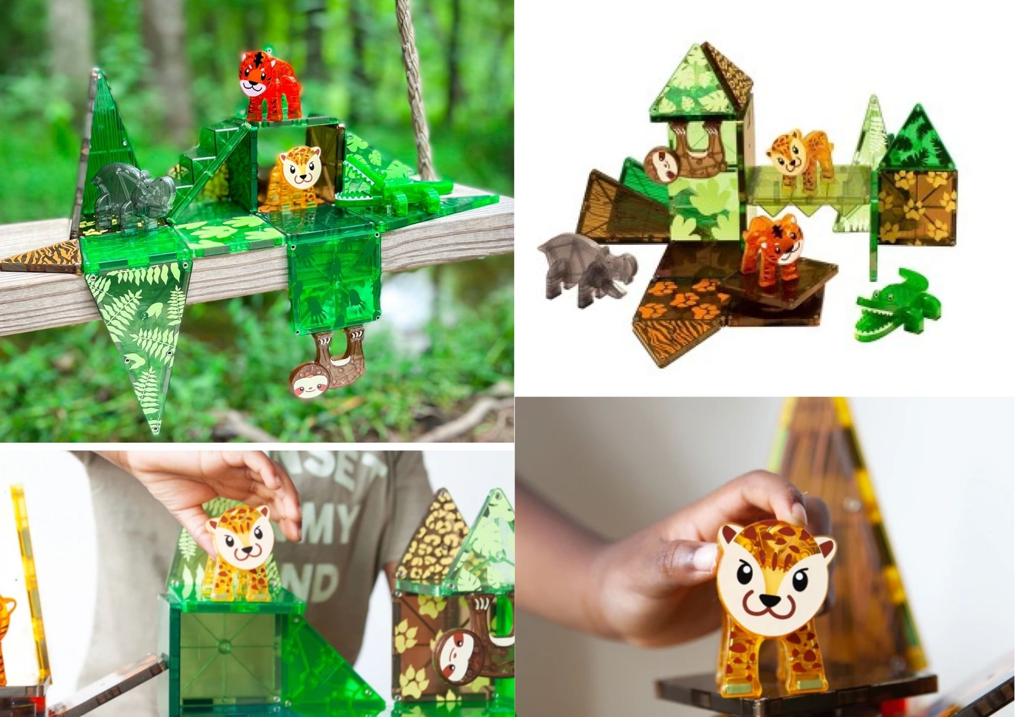 Farebné priesvitné diely sú pre deti vizuálne lákavé a práca s nimi je intuitívna, takže si poradia aj tí najmenší. Skvelou voľbou je aj menšia tematická sada MAGNA-TILES Jungle. Obsahuje zvieratká a tropické motívy, ktoré deti prirodzene priťahujú, a vďaka menšiemu množstvu dielikov ide o výborný darček aj pre rodiny, ktoré ešte len začínajú so stavebnicami.