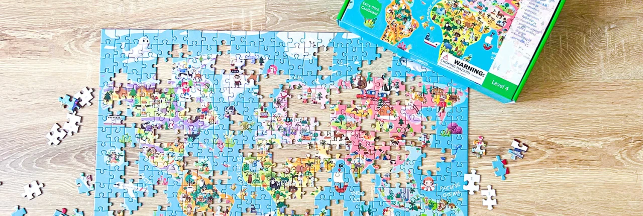 Puzzle Deň v ZOO 108 ks Skúste poskladať s deťmi farebnú ZOO – zložte, pozorujte, bavte sa Tieto puzzle ponúkajú veľký obraz zložený zo 108 dielikov, uložených v praktickom kufríku. Po dokončení skladačky čaká deti veselý farebný svet plný zvieratiek ako sú žirafa, slon, opice či pandy. Hra ideálna ..
