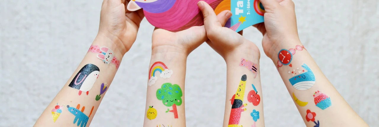 BeTeens Trblietavé tetovanie Trblietavé tetovania pre kreatívne duše Vstúpte do sveta kreativity a individuality s našimi jedinečnými farebnými obrázkami na kožu. Sady BeTeens sú špeciálne navrhnuté pre dievčatá, ktoré túžia po vlastnom unikátnom tetovaní. Už žiadne nudné nálepky, teraz si môžu vytv..