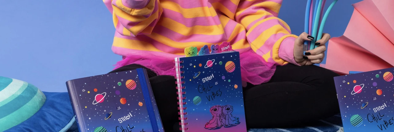 Zápisník špirálový B5 so záložkami Stitch Pastel Zápisník s dušou rozprávky Zápisník B5 so záložkami Stitch Pastel je ideálny spoločník pre všetkých školákov, študentov aj kreatívcov. Vďaka záložkám si ľahko usporiadaš poznámky či myšlienky, a veselý motív obľúbeného Disney hrdinu Stitcha ti vždy vy..